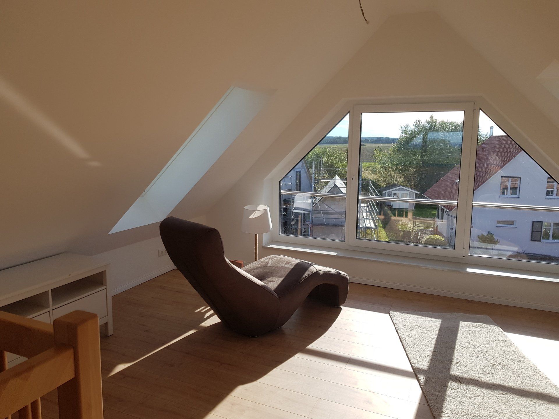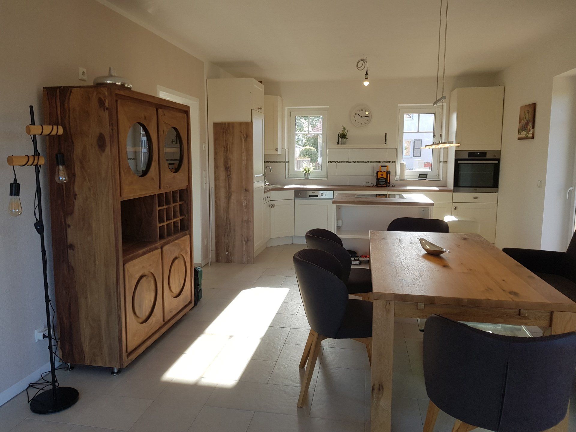 Der offene Küchen-, Ess- und Wohnbereich ist für sie ohne Stufen im Erdgeschoss erreichbar.