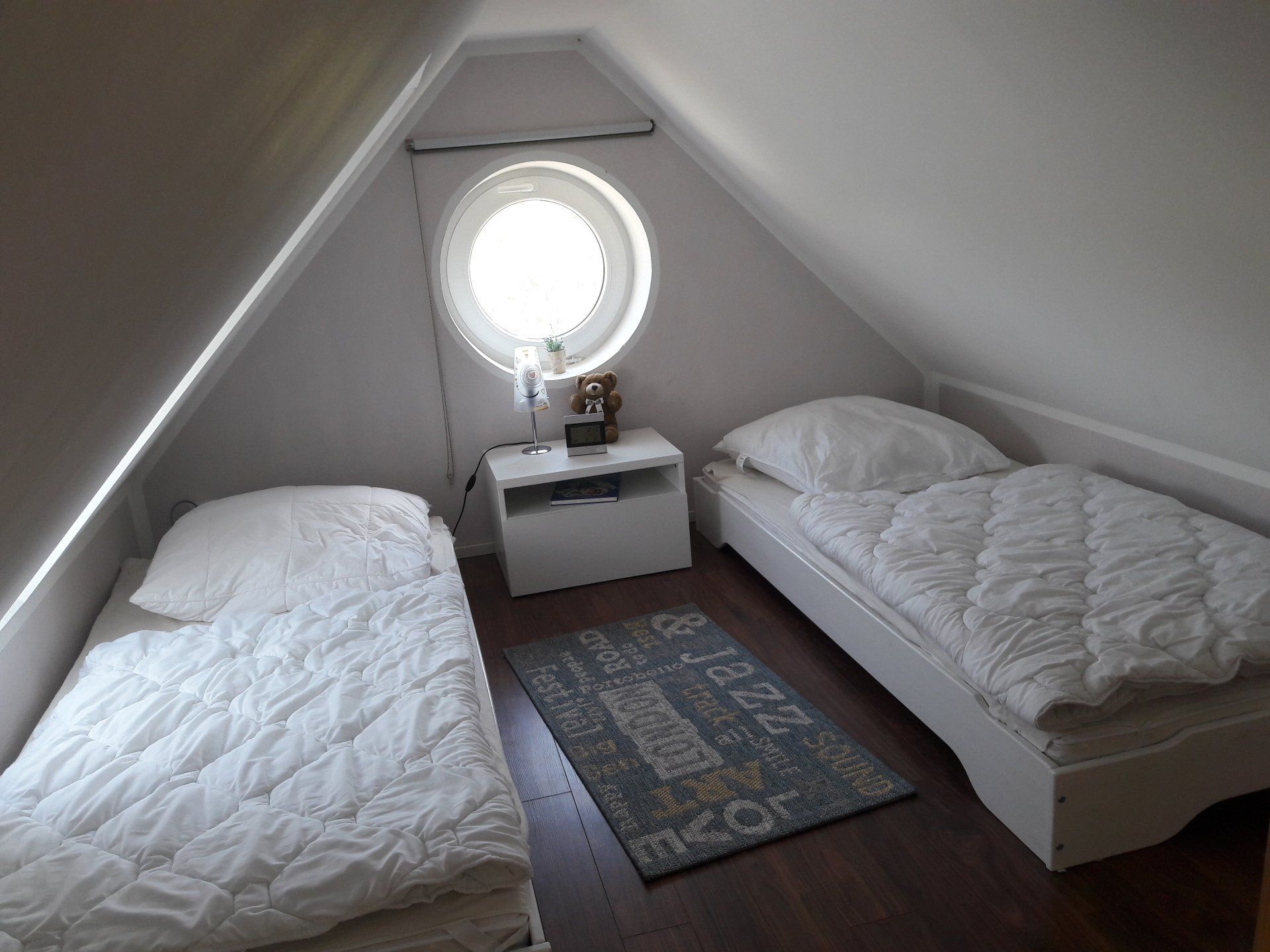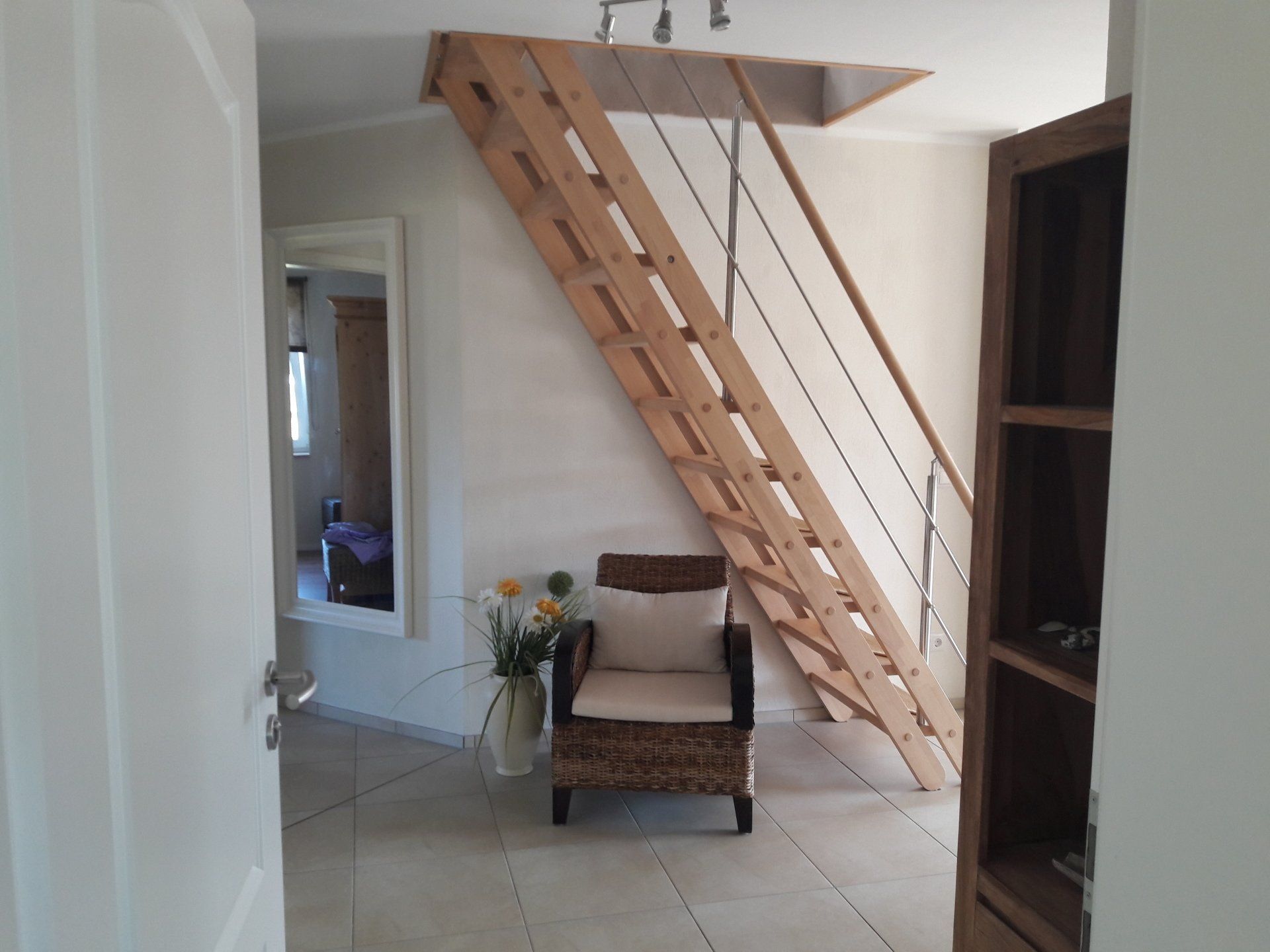 Unsere offen gestaltete Wohnung bietet Ihnen ein Wohnerlebnis über zwei Etagen. Der ausgebaute Spitzboden ist ein Paradies für die Kinder und Jugendliche (Vermietung ab 6 Jahren). Sie schlafen in den kleinen Spitzgiebeln wie in einem Zelt, haben ihren eigenen Spielbereich und die Möglichkeit, unabhängig von den Eltern, fernzusehen.